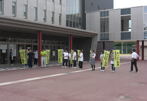 昨日は雨の中で女子バスケットボール部が担当し。