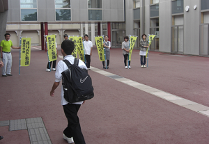3日から2学期の親子挨拶運動が再始動しました。