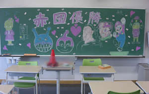 体育祭前日は、放課後の全学級の黒板に