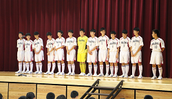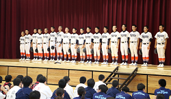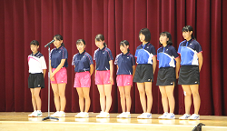 9日、県大会と通信陸上大会の壮行式が行われ、
