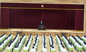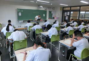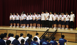 校長式辞では、1学期の生徒の成長を認めるとともに