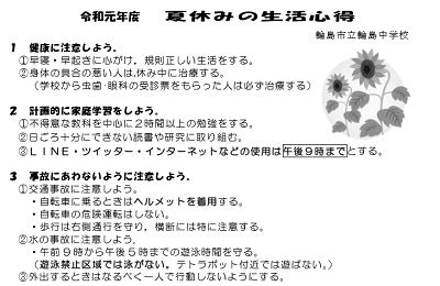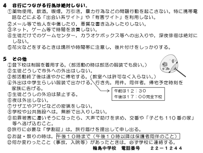 各ご家庭、地域の皆様方にも生徒への指導と見守りを