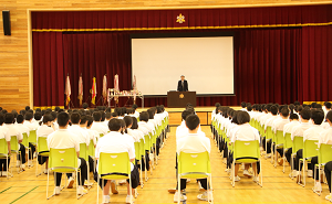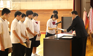 中間テストの成績優秀者の表彰式を行いました。