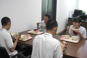 給食を食べながら意見を交わしました。