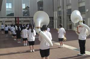 校舎周りを歩きながら演奏練習しました。