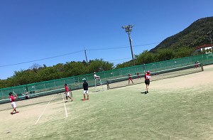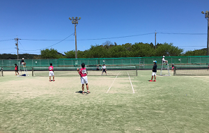 町野テニスコートでソフトテニス大会が開かれました。