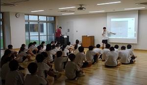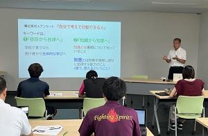 校長先生の挨拶後、各担当から学校の取組の説明を行いました。