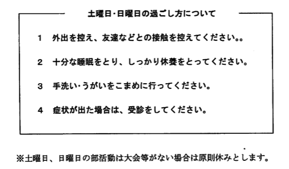 今週末の部活動を原則休止することを決めました。