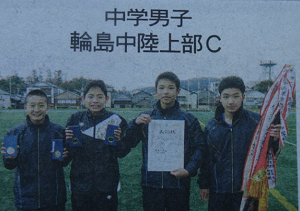 団体1位 輪島中陸上部C(上野和、大端、新田、鶴竹)