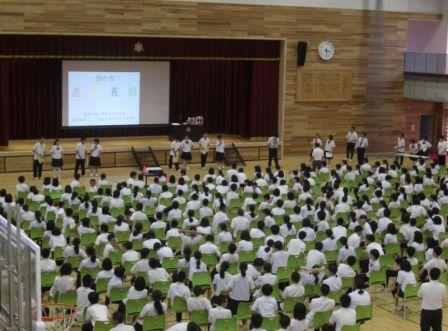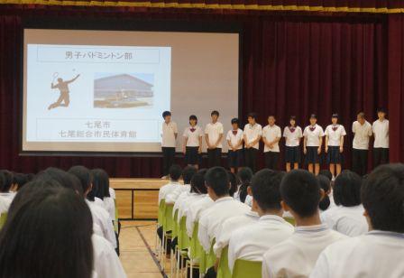 県体育大会及び県吹奏楽コンクールの壮行式を行いました。