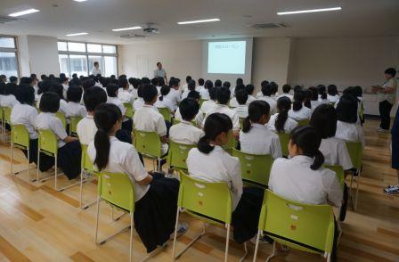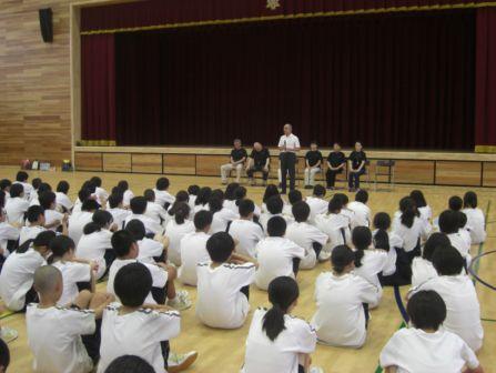 夏休み中に行う「わく・ワーク体験」に向けて集会を開きました。