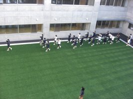 緑の人工芝の上で、気持ちよく練習を行いました。