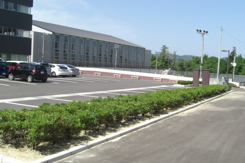 練習場所は中庭の「里山里海ひろば」です。