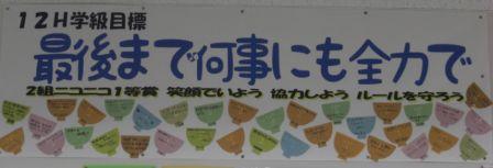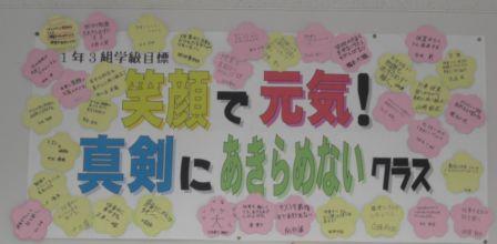教室の後ろには、各学級の目標が掲示してあります。