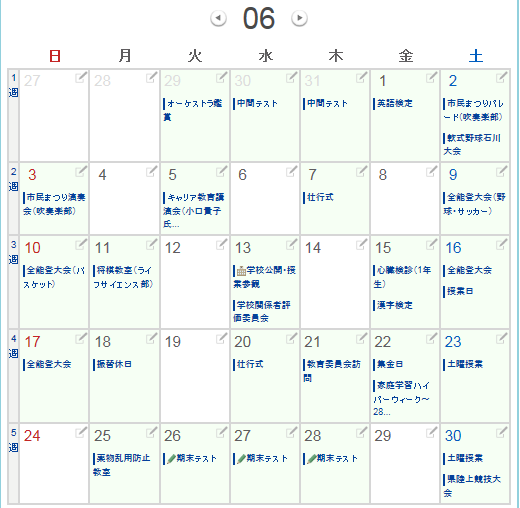 画面メニューの「行事予定」をクリックしてください。