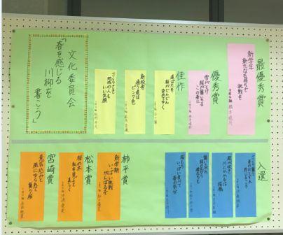 文化委員会主催の「春を感じる川柳展」が行われ、