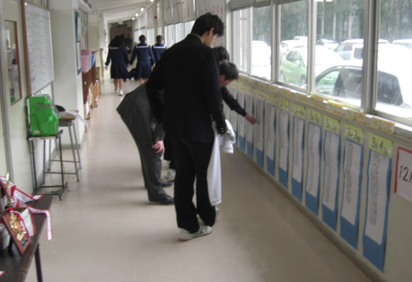 職員室前の廊下に12月に実施した