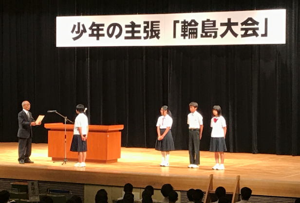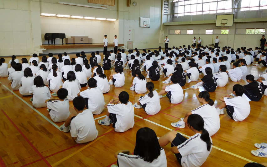 輪島市文化会館で、市の中学生が一堂に会して
