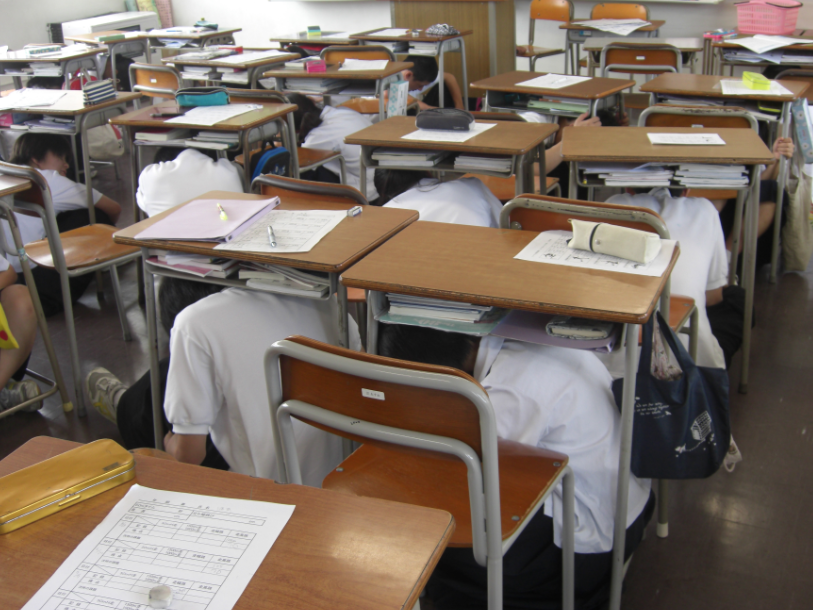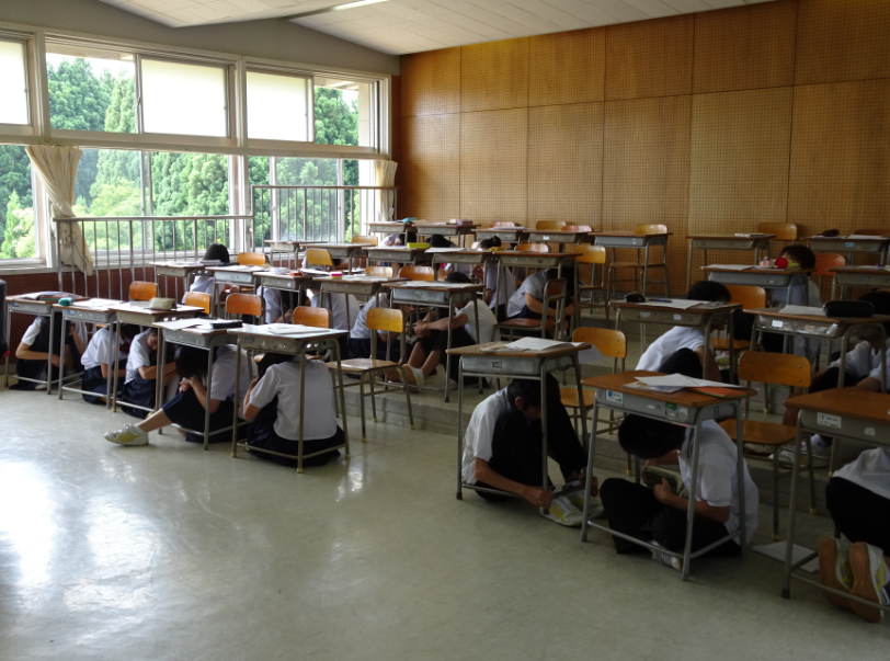 「しゃがむ・かくれる・じっとする」の行動を実践しました。