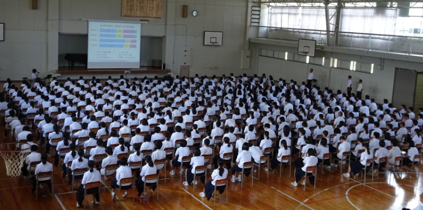 1学期最後の全校集会では、期末テストの表彰が行われました。