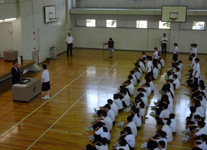 2017年7月22日 08時26分1学期最後の全校集会では、期末テストの表彰が行われました。