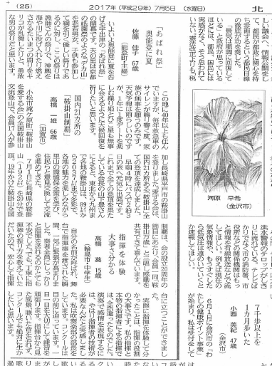 朝刊の投稿欄に生徒の作文が掲載されました。