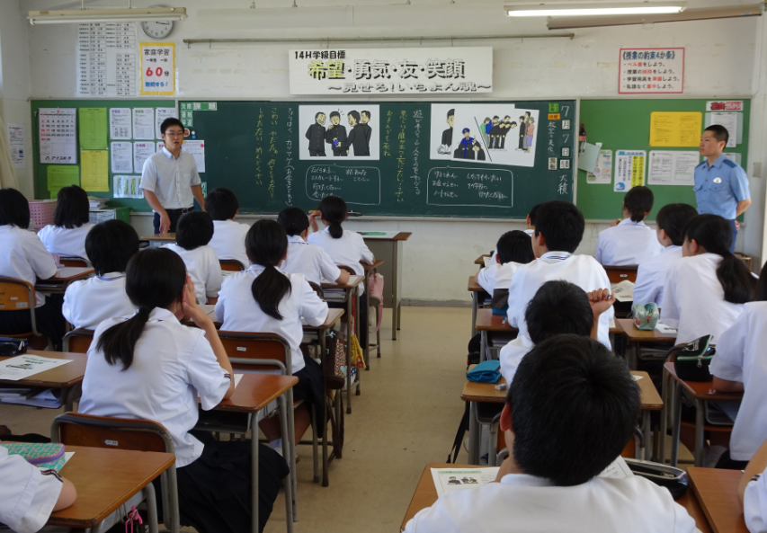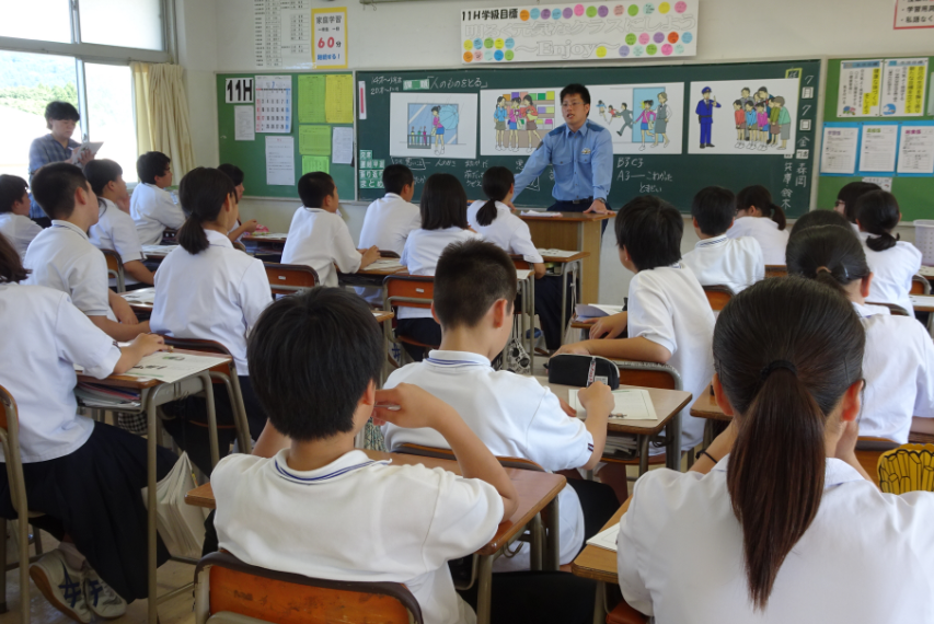 この授業は、警察と連携して、いじめや非行を防止することがねらいです。
