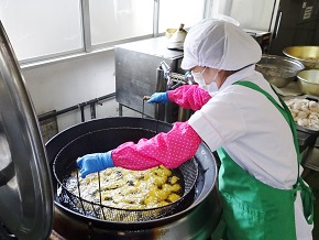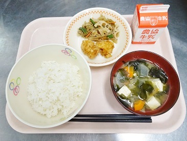 輪島市農林水産課さんと、石川県漁協輪島支所さんの協力により、輪島の海で採れた『輪島ふぐ』が給食に登場しました。