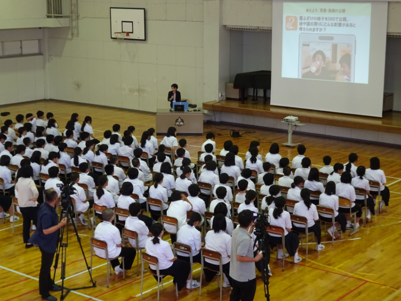 1年生を対象に「スマホ・ケータイ安全教室」を実施。