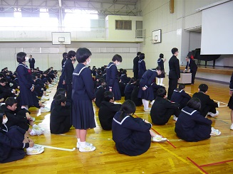 14:00より平成28年度の輪島中学校の離任式が行われました。