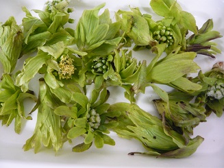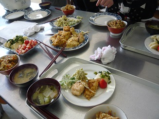 1,2年生の混合班で上手に調理をしました。ミシマオコゼはとてもおいしかったです。 ふきのとう