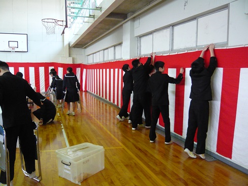 新任式後、新2・3年生が入学式の準備をしました。