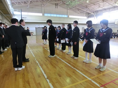 期末テストの成績優秀者の表彰が行われました。