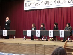 入学予定の各小学校(河井小、鳳至小、大屋小、鵠巣小、河原田小、三井小)保護者、輪島中PTA、校区の小学校教職員の方々に参加していただきました。