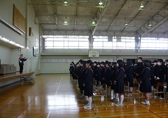 3年生は、もうすぐ中学校生活が終わります。10日が卒業式です。式の練習を始めました。