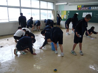 昨日は1年生が教室のワックスがけを行いました。1年間使用した教室をきれいにして、来年の1年生にわたします。