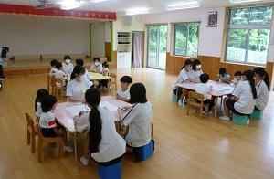 4組は河井保育園にて家庭科