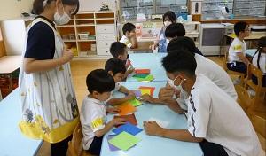 幼児と折り紙・お絵かきする中で笑顔となり