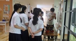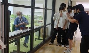 昼休みの時間、生徒たちは作業の見学と