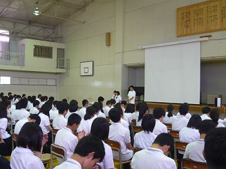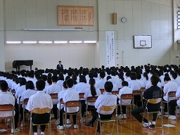 3,4限目に体育館で講演会を行いました。