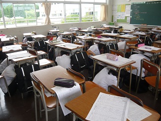 輪島中学校でも11時に行いました。地震が発生したとの想定で、収まるまで机の下に入りました。頭を入れて、じっと収まるのを静かに待ちました。