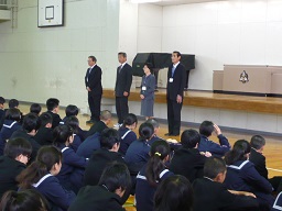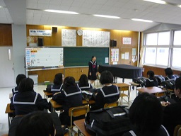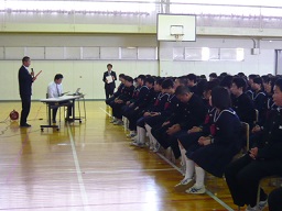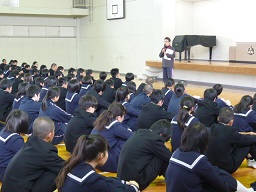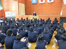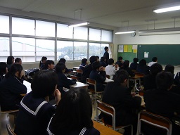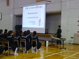 輪島高校の校長先生からお話をお聞きしました。その後、4人の高校生から、貴重な参考になる、現在の自分の思いを話してもらいました。ちょとだけ年上の先輩からのお話は、中学生の心に残りました。ありがとうございました。