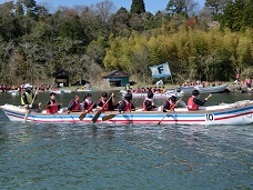 みんなで力を合わせて大型カヌーを漕ぎました。