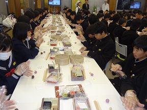 全員で和菓子作りに挑戦しました。華麗な技の一部を教えてもらいました。