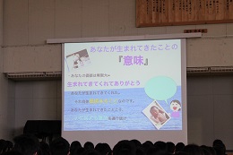 12月16日(木)5限目に1年生140人は「いしる」について勉強しました。保護者の皆さんも一緒にお話を聞きました。
