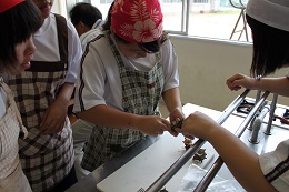 科学部、英語部、美術部の1.2年生26人と保護者、教職員15人の合計41人で、輪島でとれたおいしい食材を味わいました。 親子料理教室(海の幸を味わう).pdf生きているサザエを殻から出しました。海女の松下さんのお話をききました。おいしい海のめぐみをありがとうございました。