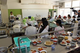 PTA食育生活委員会の主催で海女さんの講演会と海の幸で料理実習をおこないました。