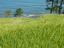 今日は5月にコシヒカリの苗を植えさせてもらった千枚田へ、畦の草刈りにいきました。