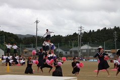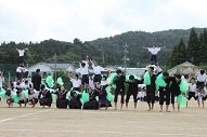 赤、黄、青、緑の団長さんを中心に夏休み中から練習してきた応援合戦が披露されました。