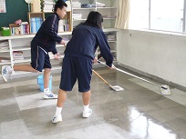 今日は5,6限目に1年生がワックスがけをしました。一年間使用した教室がすっきりときれいになりました。